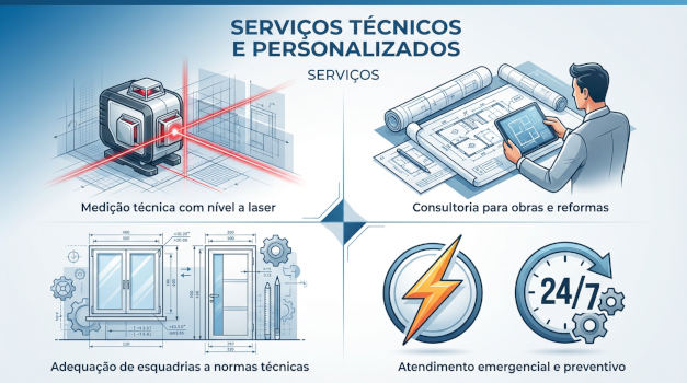 Instalação profissional de esquadrias sob medida para residências, comércios e condomínios.