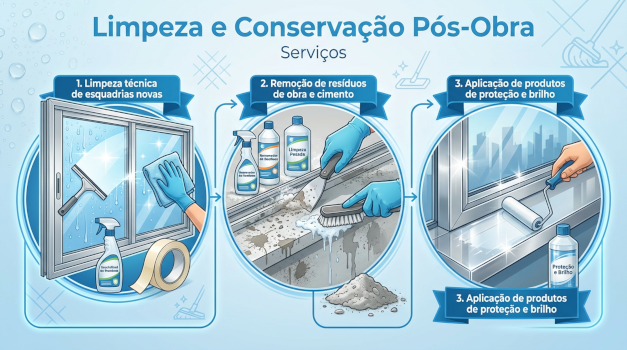Higienização especializada para alumínio e vidro, evitando manchas e oxidação.